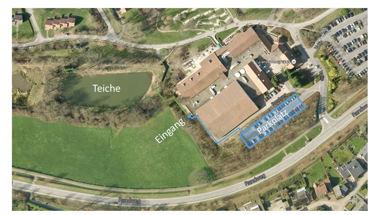 Sie finden uns neben dem Ferienpark „Landal Hoog Vaals“. Hier können Sie beide Parkplätze benutzen. Hinweis: Die Schranke zum grossen Parkplatz rechts öffent automatisch beim Ein- und Ausfahren. Der Eingang zum Vereinsgelände ist ausgeschildert und liegt hinter dem Indoorspielparadies.